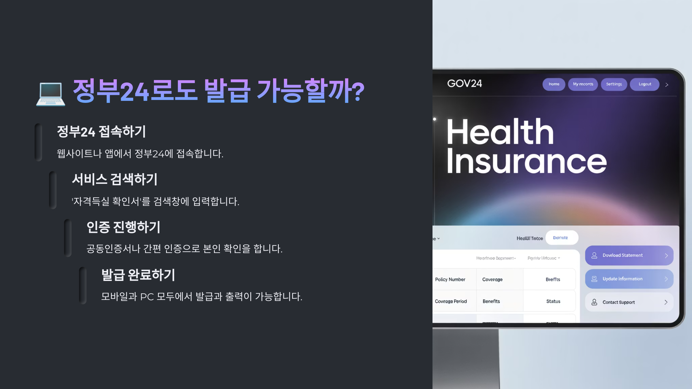 정부24는 다양한 공공문서를 통합 발급할 수 있는 플랫폼이라서, 국민건강보험공단 자료도 일부 연동돼 있거든요.
