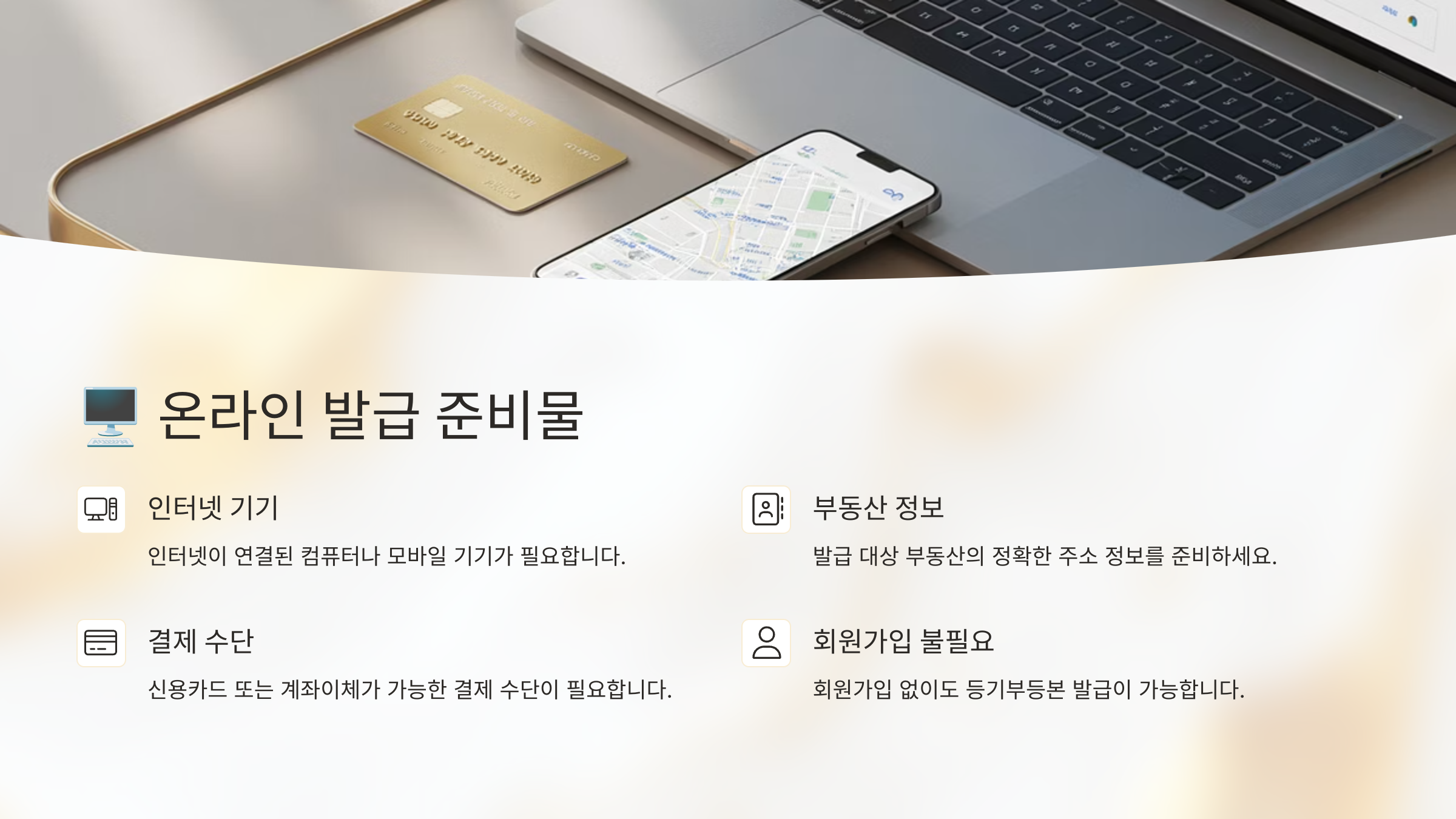 부동산 등기부등본을 인터넷으로 발급받으려면 몇 가지 준비물이 있어요. 다행히 대부분은 집에 있는 기본 환경이면 충분해요.