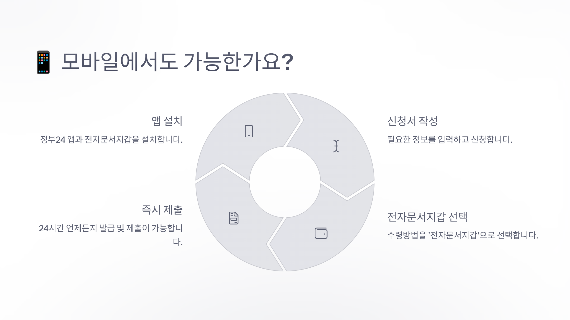 A2. 네, 정부24 모바일 웹이나 앱을 통해 신청이 가능해요.