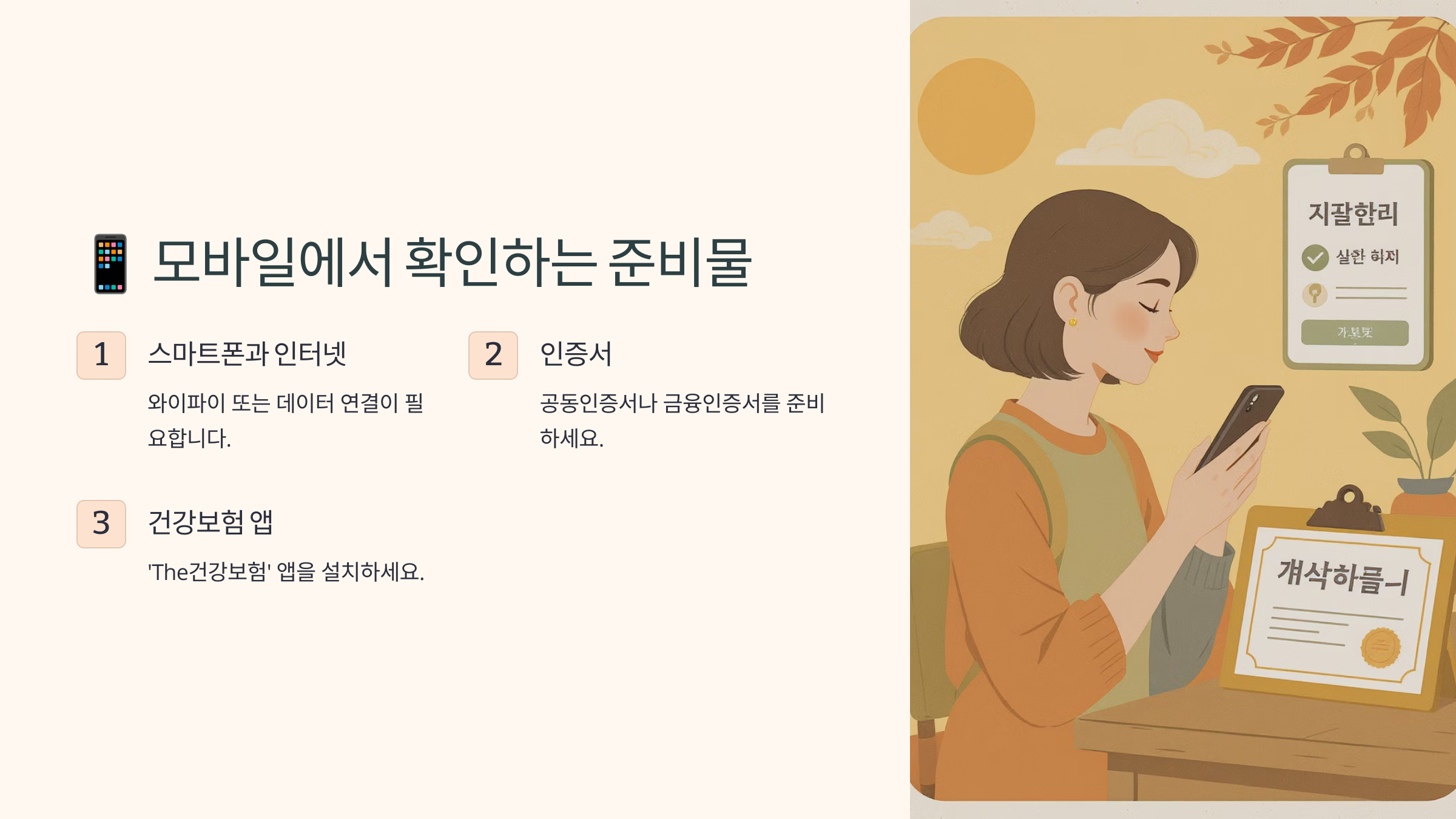 스마트폰만 있으면 건강검진 결과를 바로 확인할 수 있어요. 복잡한 절차 없이 필요한 준비물 몇 가지만 갖추면 돼요.