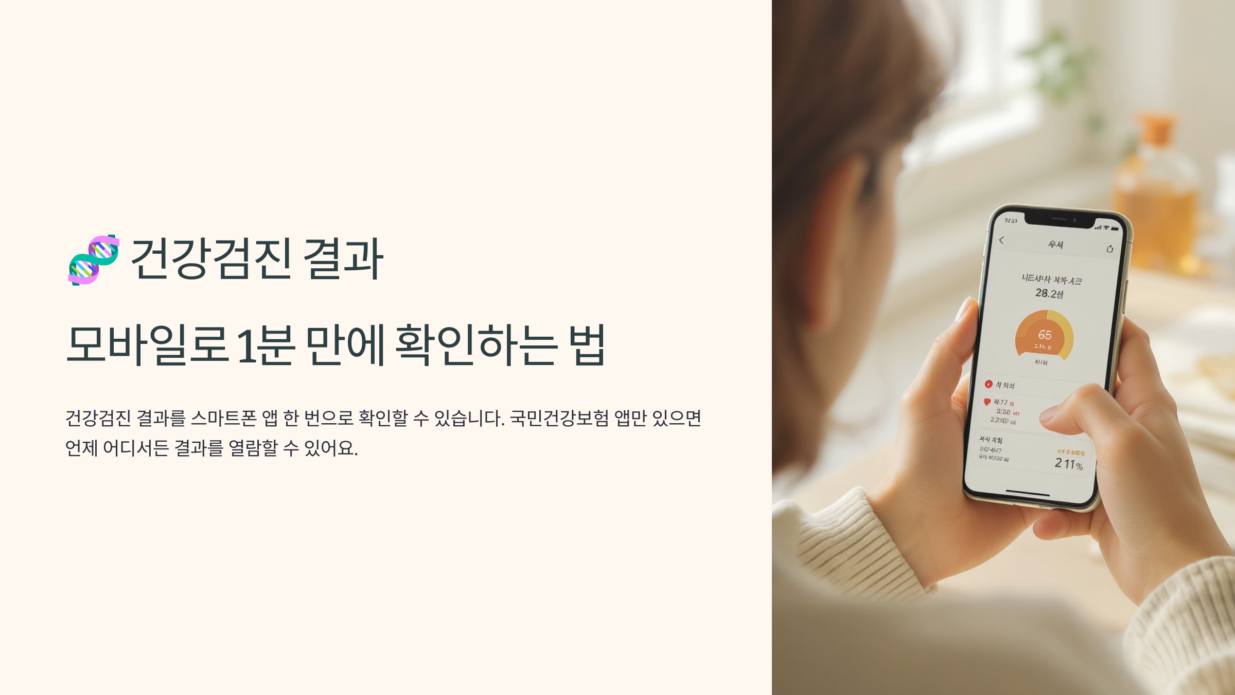 건강검진 결과, 병원에서 우편으로 받으시던 시대는 끝났어요. 이젠 스마트폰 하나로 언제 어디서든 1분 만에 결과를 확인할 수 있답니다.