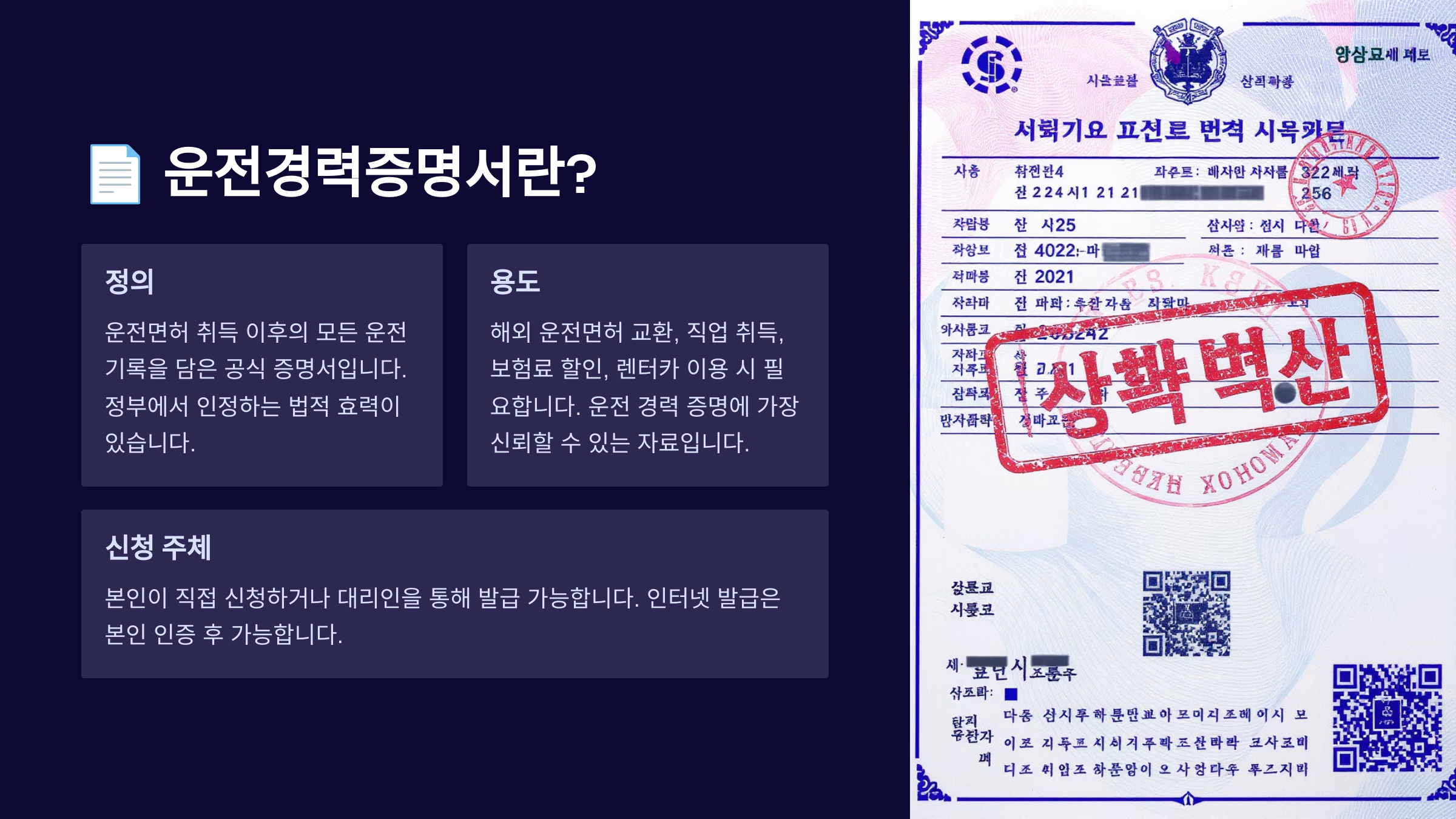 운전경력증명서는 본인의 운전면허 소지 여부와 그동안의 운전경력을 객관적으로 확인할 수 있는 공식 문서예요.