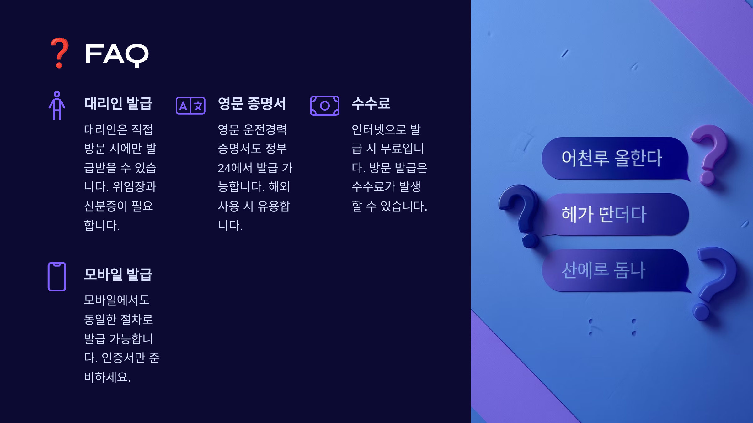A2. 온라인 발급은 무료예요. 오프라인 방문 시 수수료가 발생할 수 있어요.