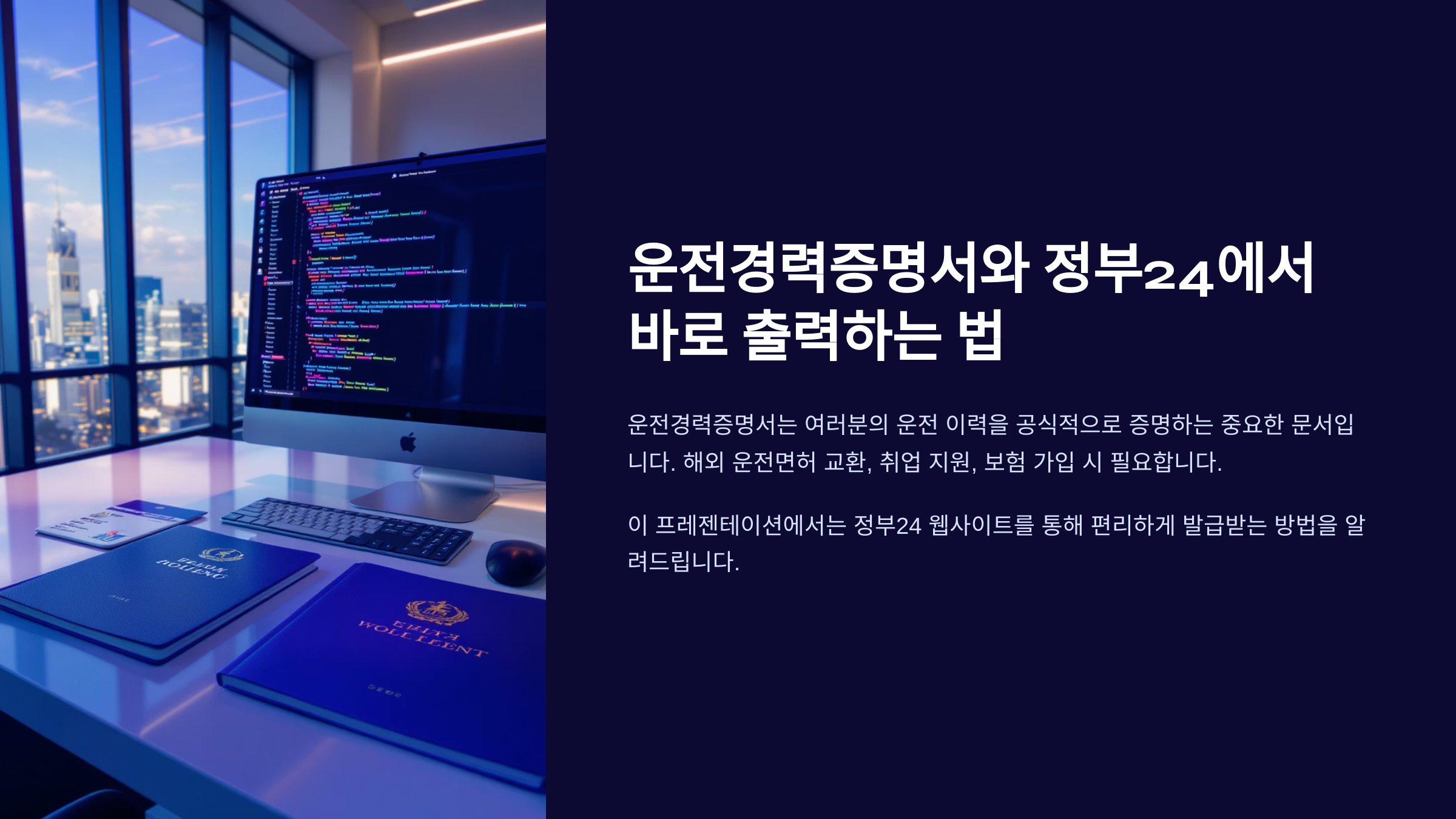 운전경력증명서는 정부24 사이트를 통해 비대면으로 간편하게 발급받을 수 있어요. 절차도 아주 직관적이라 누구나 따라할 수 있답니다.